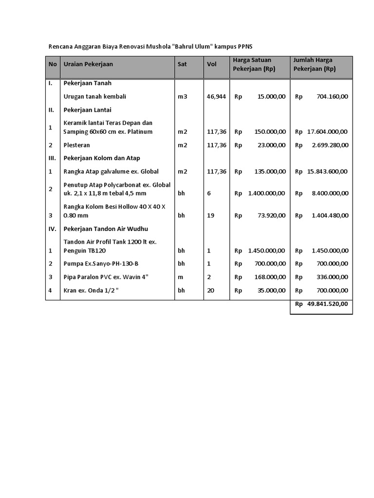 Rencana Anggaran Biaya Renovasi Mushola from imgv2-2-f.scribdassets.com Ketua komisi d, ida mahmudah mengetahui rencana anggaran ini sempat ramai dibahas publik. Supaya lebih jelas, silahkan download. Rencana anggaran biaya bangunan sangat penting untuk memperkirakan biaya konstruksi/renovasi rumah. Anda butuh ideas to improvement. Teman2 bisa mendapatkan paket gambar kerja lengkap dan rencana anggaran biaya (rab) pembangunan rumah impian. Merencanakan rab (rencana anggaran bangunan). #5 lebih baik berkreasi dengan furnitur diy. Menghitung biaya renovasi rumah tanpa merubah struktur bangunan adalah sbb:
